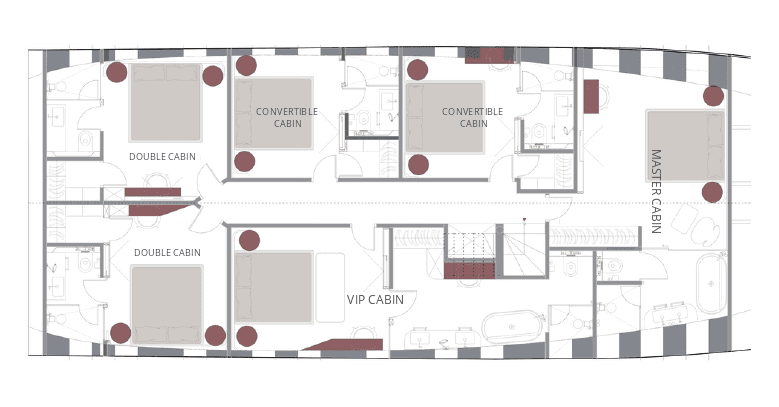 The cabins offer refined comfort and elegant design, ensuring a relaxing retreat during every voyage. Each cabin, from the master suite to the convertible cabins, is thoughtfully appointed to provide privacy and an exceptional guest experience.