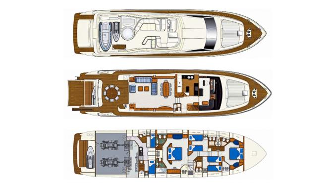 - Extensive Sonos entertainment system in the aft deck, flybridge, and saloon